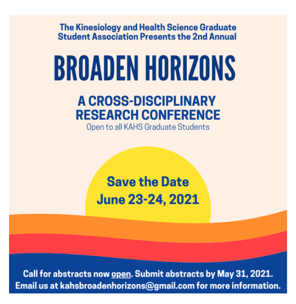 The KAHS Graduate Student Association welcomes York University KAHS students to submit abstracts to the Broaden Horizons Conference which will take place on June 23-24, 2021.